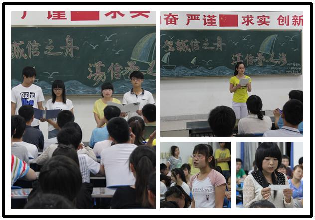 为了让资助诚信感恩教育活动更加深入的开展,让诚信感恩教育走进班级,5月31日米兰官网在各班级开展了形式多样的主题班会活动,演讲、小品、即兴心得体会、感言,同学们积极参与,畅所欲言,用行动和语言诠释诚信和感恩。工程造价1209、1210班开展了“驾诚信之舟、荡信誉之海,在感恩中扬帆起航”的主题班会活动。米兰官网领导亲临现场,师生们一起交流诚实守信,知恩图报的现实意义。同学们自编自演的融“受助、诚信、感恩”于一体、取材于大学生生活的“还贷”小品,将班会推向了高潮,很多同学深受感动。现场掌声阵阵,喝彩不断。最后全体人员进行了诚信感恩集体宣言。通过本次主题班会活动,同学们纷纷表示深受教育,一定要将诚信感恩落实在行动中,上好一堂课,一次自习,努力学习,掌握技能,遵守校纪校规,做“三风”建设的领航人,按时还贷,履行自己的职责,回报社会。